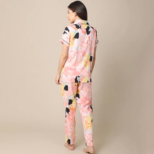 Women Peach-Coloured & Black Printed Night Suit